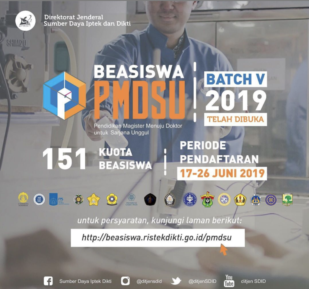 Dalam rangka meningkatkan mutu pendidikan tinggi di Tanah Air, Direktorat Jenderal Sumber Daya Iptek dan Dikti Kementerian Riset, Teknologi, dan Pendidikan Tinggi (Kemenristekdikti) sejak tahun 2013 membuka Beasiswa Pendidikan Magister menuju Doktor untuk Sarjana Unggul (PMDSU), sebuah program percepatan studi Magister dan Doktor selama empat tahun. Program ini telah meluluskan calon dosen muda berkualifikasi Doktor […]